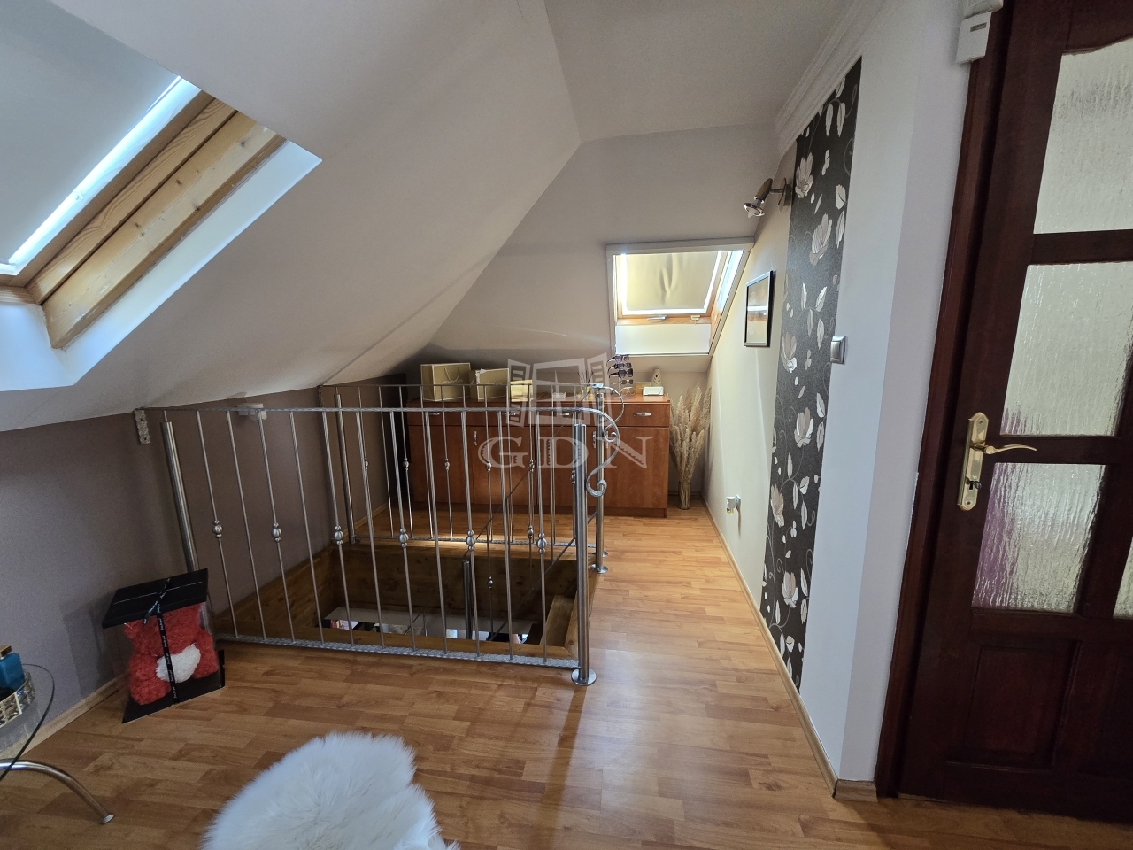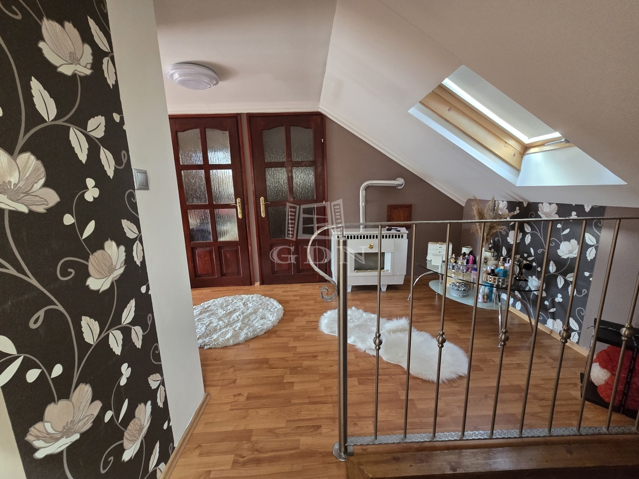 Az emeleten egy világos közlekedő, két szoba, gardrób, valamint egy erkély kapott helyet, amely kellemes, privát kikapcsolódási lehetőséget kínál.