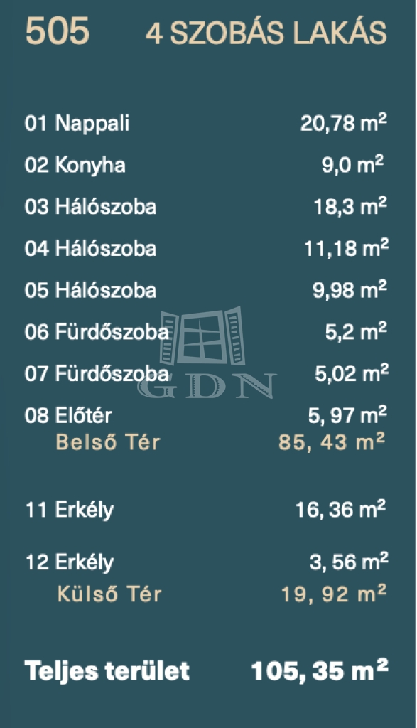 | 85 m2Alapterület | 4 Szoba |