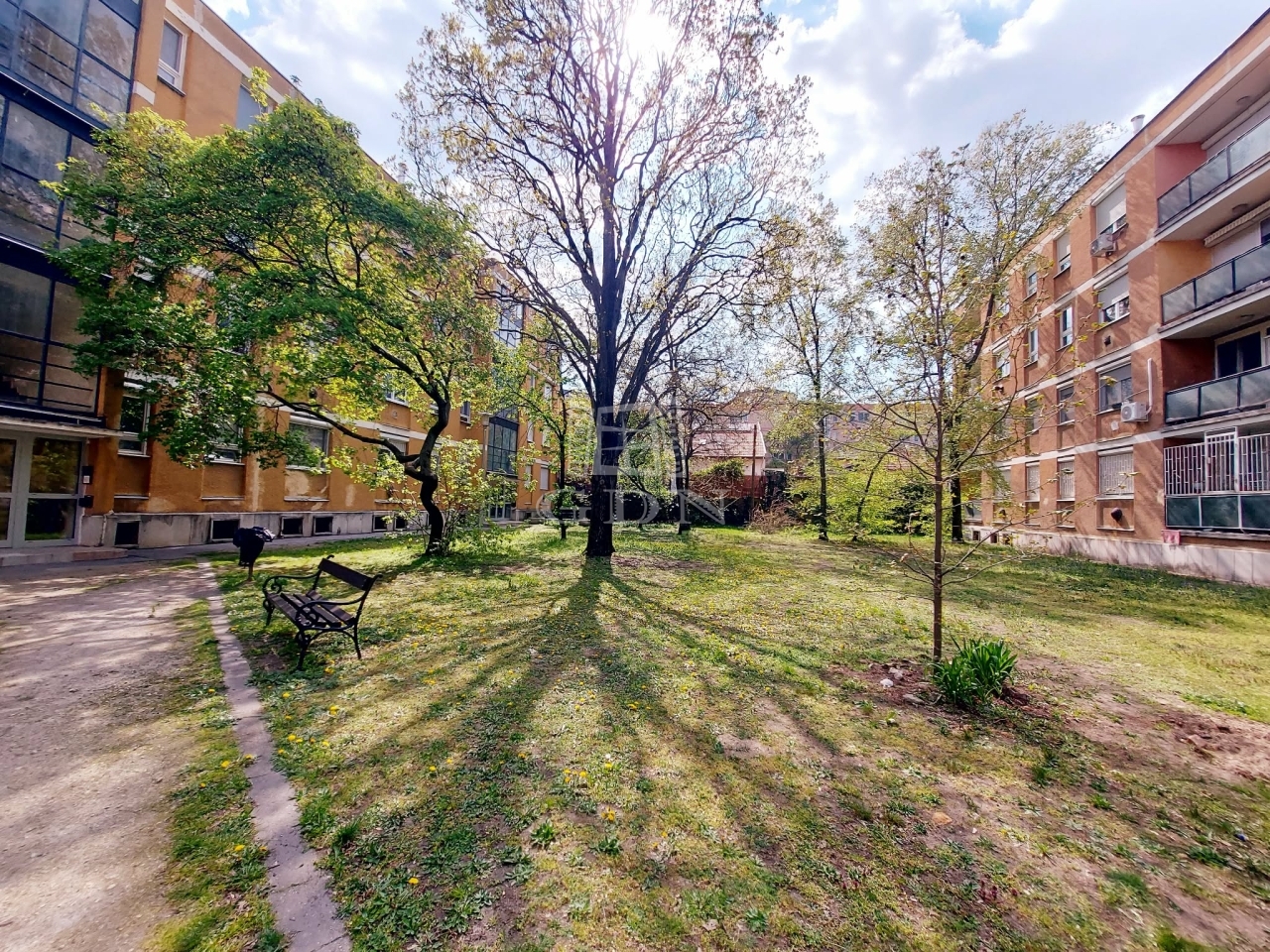 Az épület központi elhelyezkedésű, de mégis csendes belső zöld udvarra néz!!
