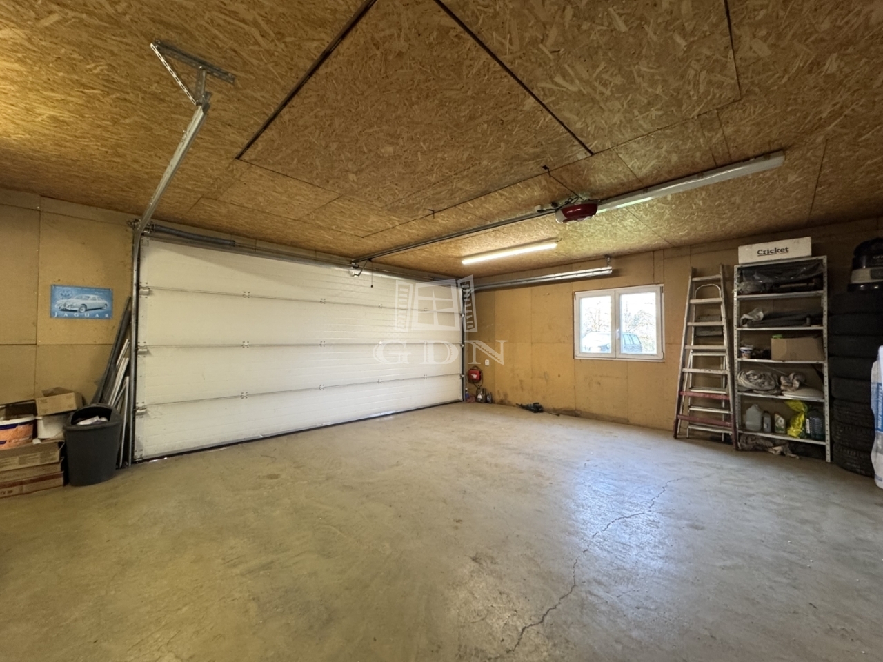 A ház mellett található egy ~50m2-es duplagarázs és tároló helyiség is, mely fa könnyűszerkezetes technológiával épült homlokzati és födémszigeteléssel.