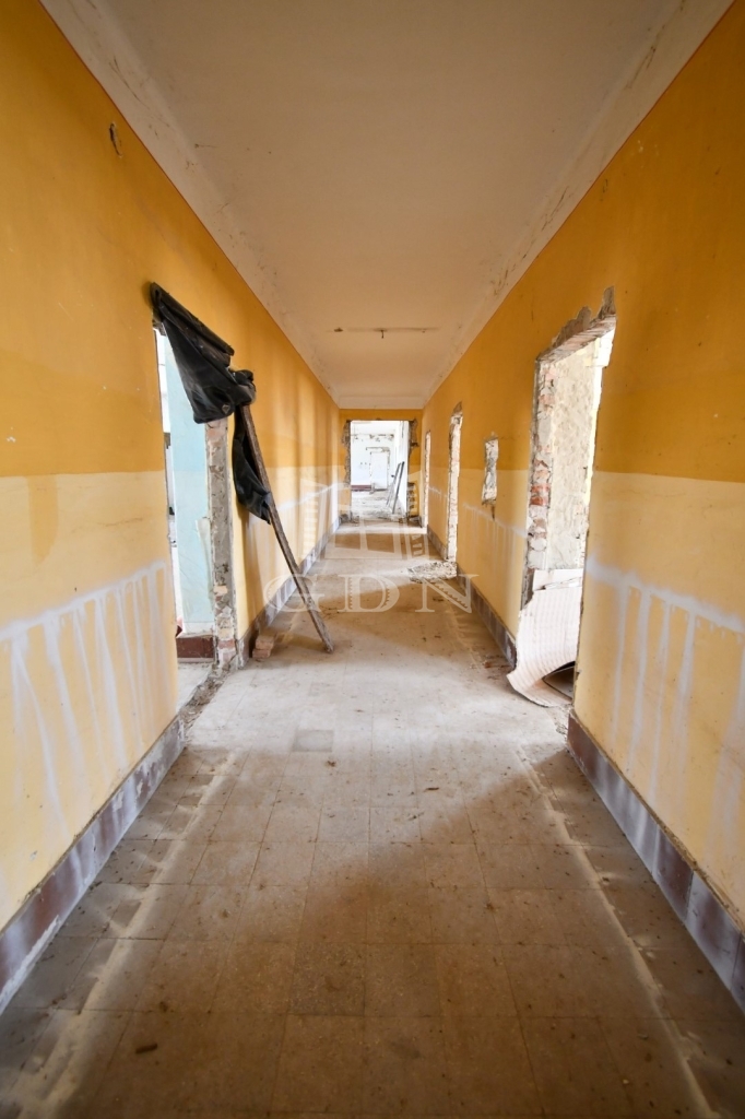 A területen található egy 580m2-es összalapterületű, felújítandó állapotú, 24 lakásos apartmanház kialakítására tervezett épület.