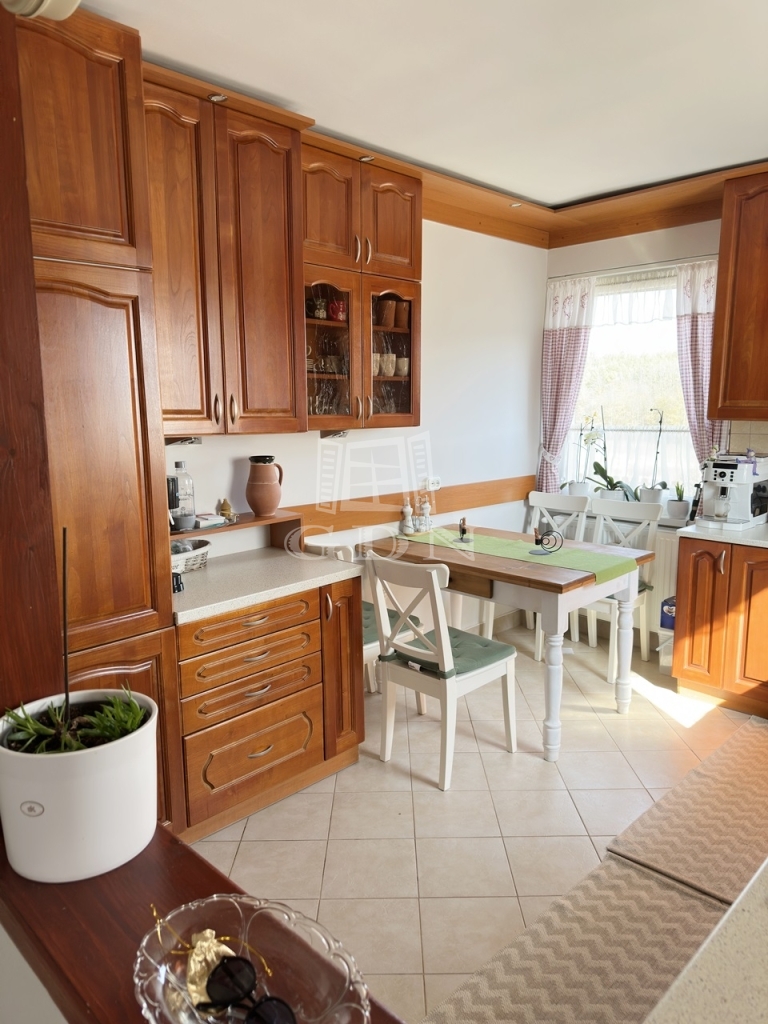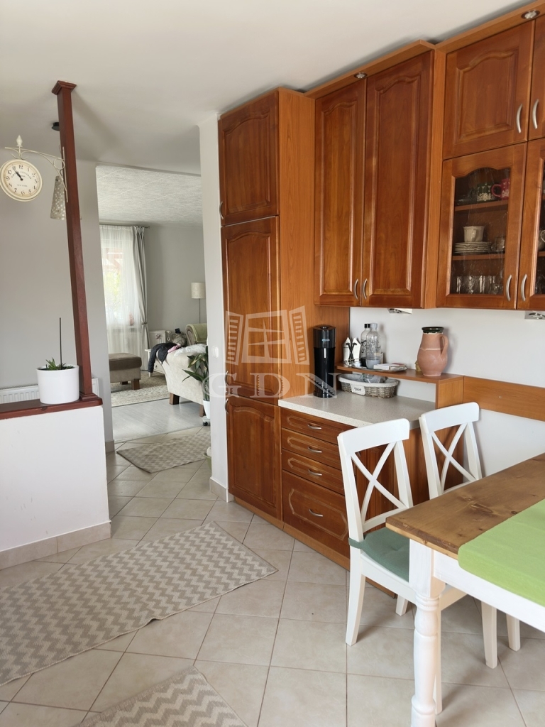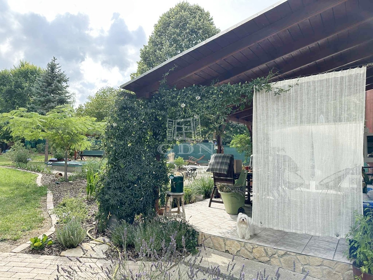 Az épület a 90-es években beton alapra, tégla falazattal épült, külső szigeteléssel ellátott, betoncserép tetőzettel rendelkezik (110 nm). A parkosított kertben (885 nm) medence, a kert végében kutya kennel, tárolók és baromfi tartásra kialakított alkalmas udvarrész is található a málna, eper és veteményes kert mellett.