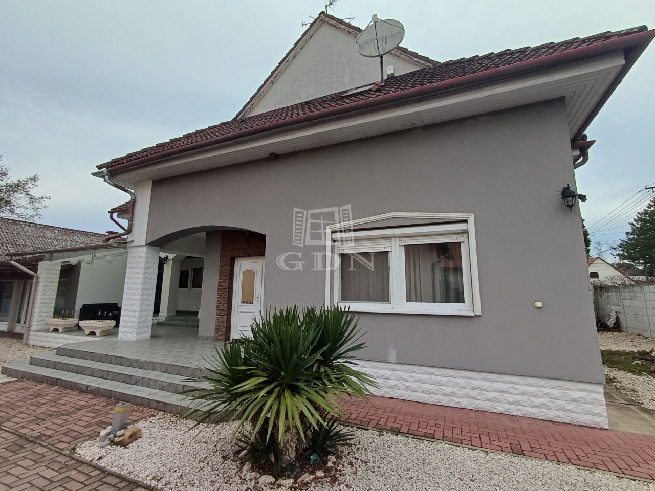 Az 1989-ben épült, tégla szerkezetű, szigetelt otthon 300 m² lakóteret kínál, letisztult, tágas terekkel és elegáns elrendezéssel: