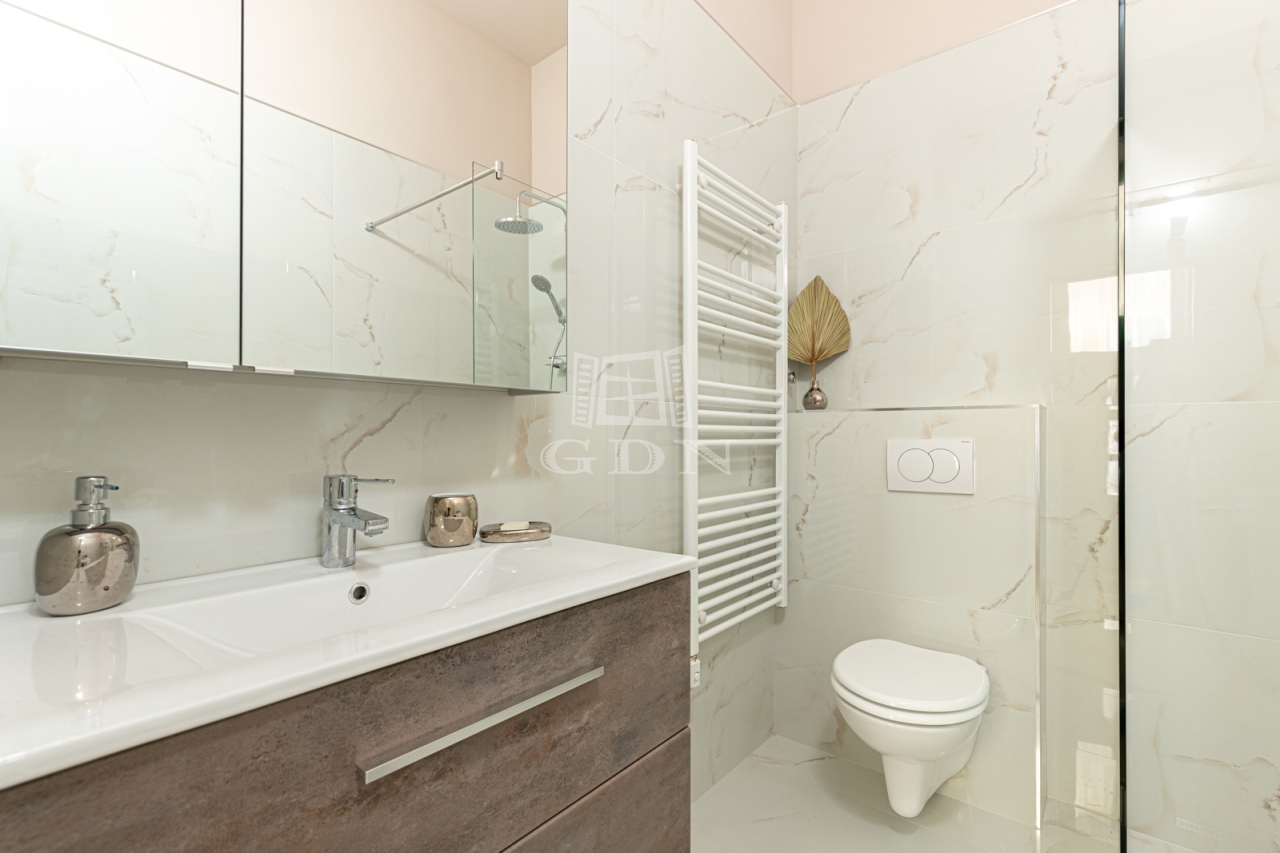 Az egyik fürdőszoba zuhanyzóval és WC-vel, a másik zuhanyzóval és mosógéppel felszerelt. A mennyezetbe épített szellőzőrendszer biztosítja a megfelelő légcserét.