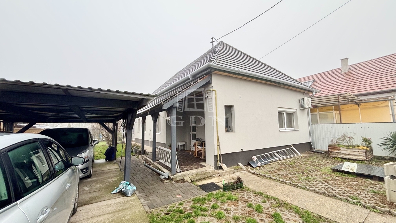 A kényelmesen karban tartható kertben helyet kapott egy fedett gépdcsibeálló, de ezen kívül 1 autó is kényelmesen elfér. Öntözésről egy ásott gyűrűs kút gondoskodik.