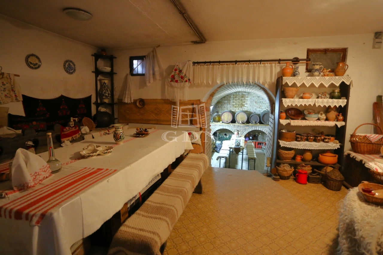 A település központjától 6 perc távolságra található a hirdetésben kínált, 1728 m²-es telken álló önálló családi ház borospincével.