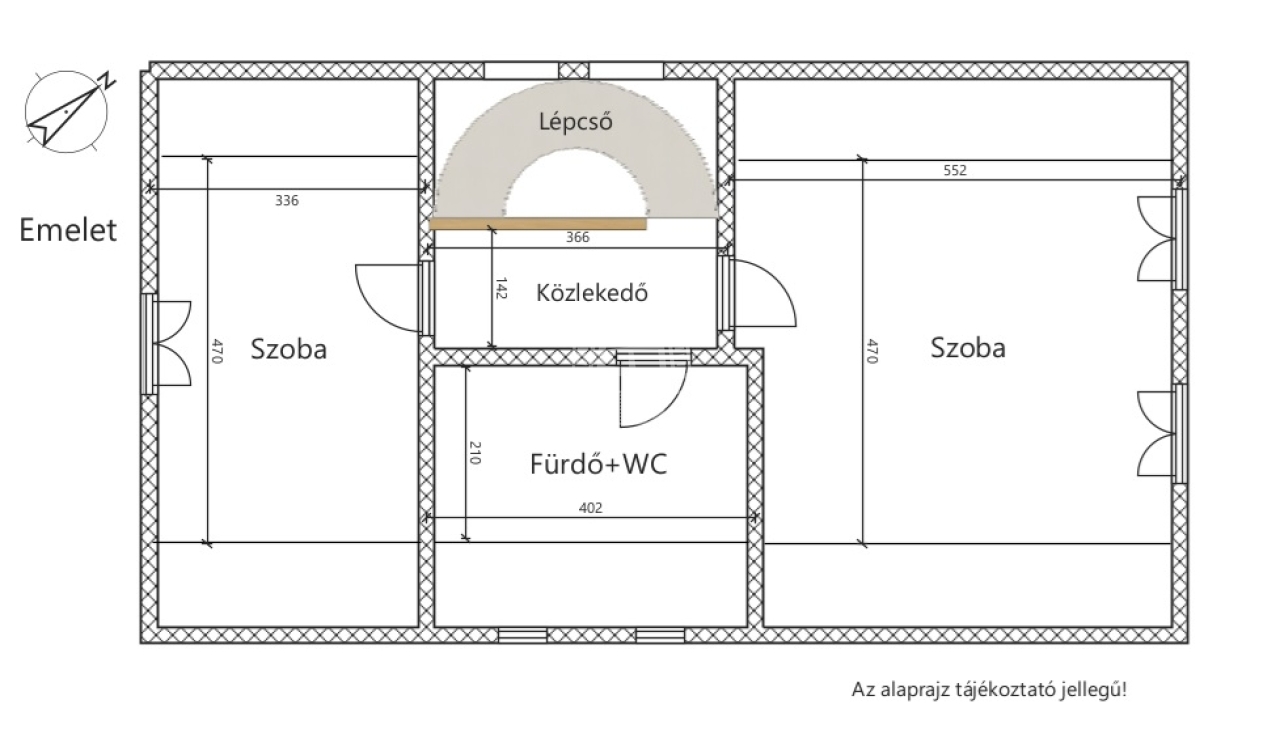 - szoba 38,2 m2 (190cm alatti: 25,9 m2)