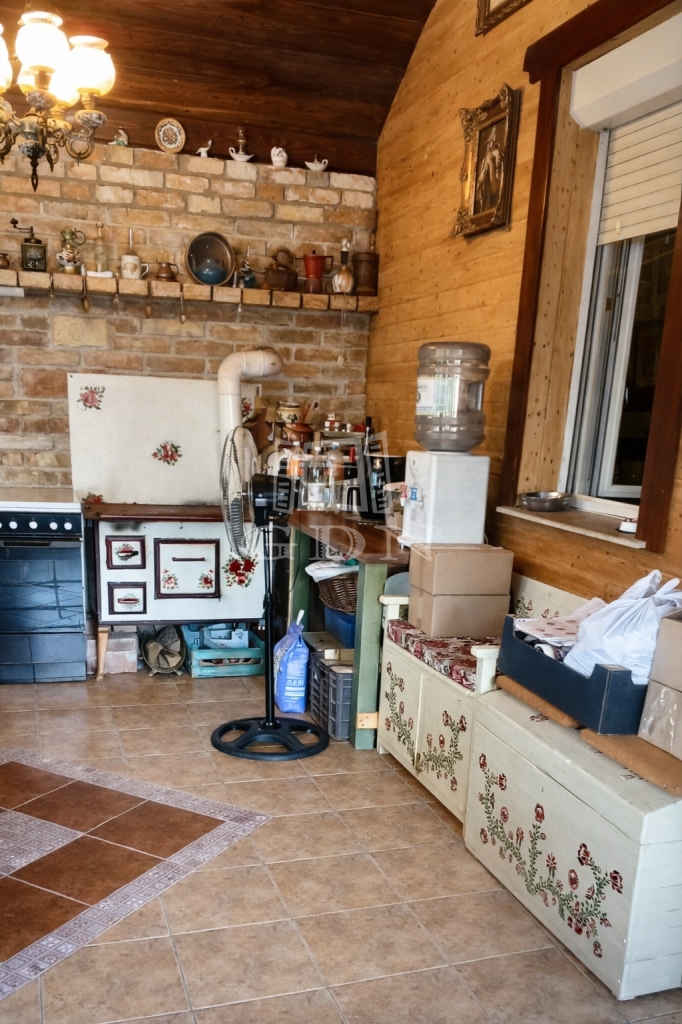 A házhoz kapcsolódik egy hangulatos, rusztikus stílusú, fedett terasz, amely egyedi elképzelések alapján, gondos kivitelezéssel készült.