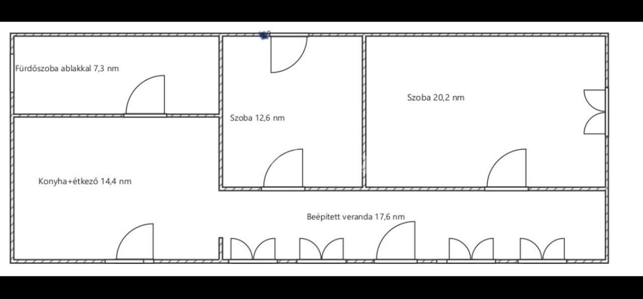 A házba egy világos, beépített verandán keresztül lépünk be, ahonnan két tágas hálószoba nyílik. A veranda végében található a konyha-étkező, amelyből egy fürdőkádas fürdőszoba érhető el.