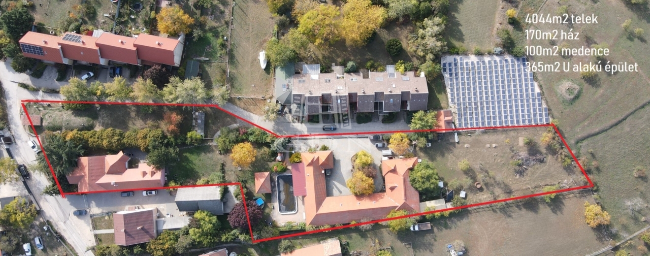 T-004808. Székesfehérváron, Öreghegyen, részben panorámás , 4044m2 –es építési telek 110m2-es családiházzal, 100m2 medencével, 365m2-es „U” alakú épülettel eladó!