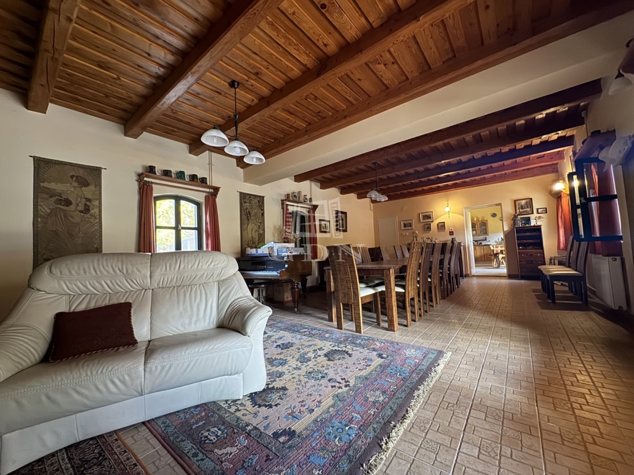 Az U alakú épületben ,több állásos gépkocsitároló, egy látszógerendás kb 50m2-es közösségi tér, és tárolók vannak.