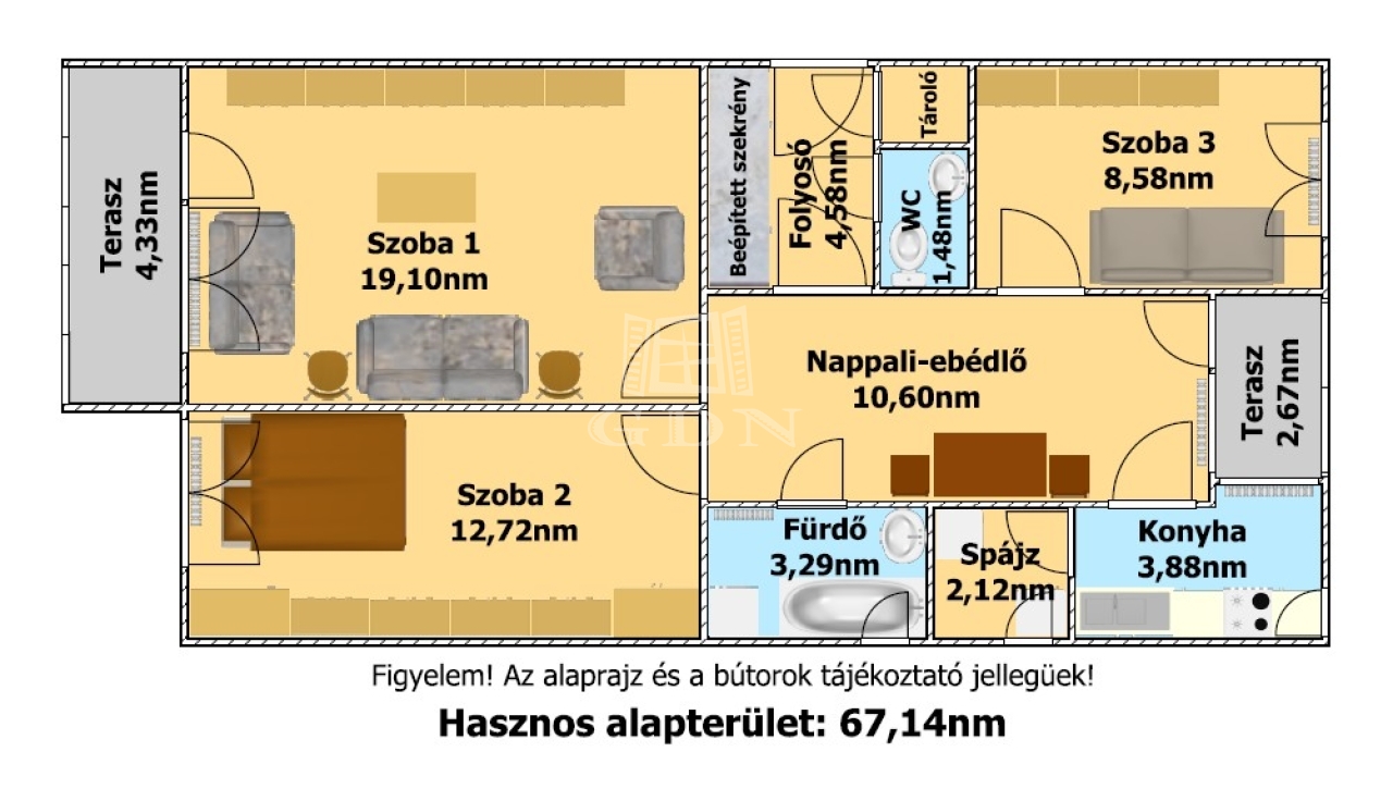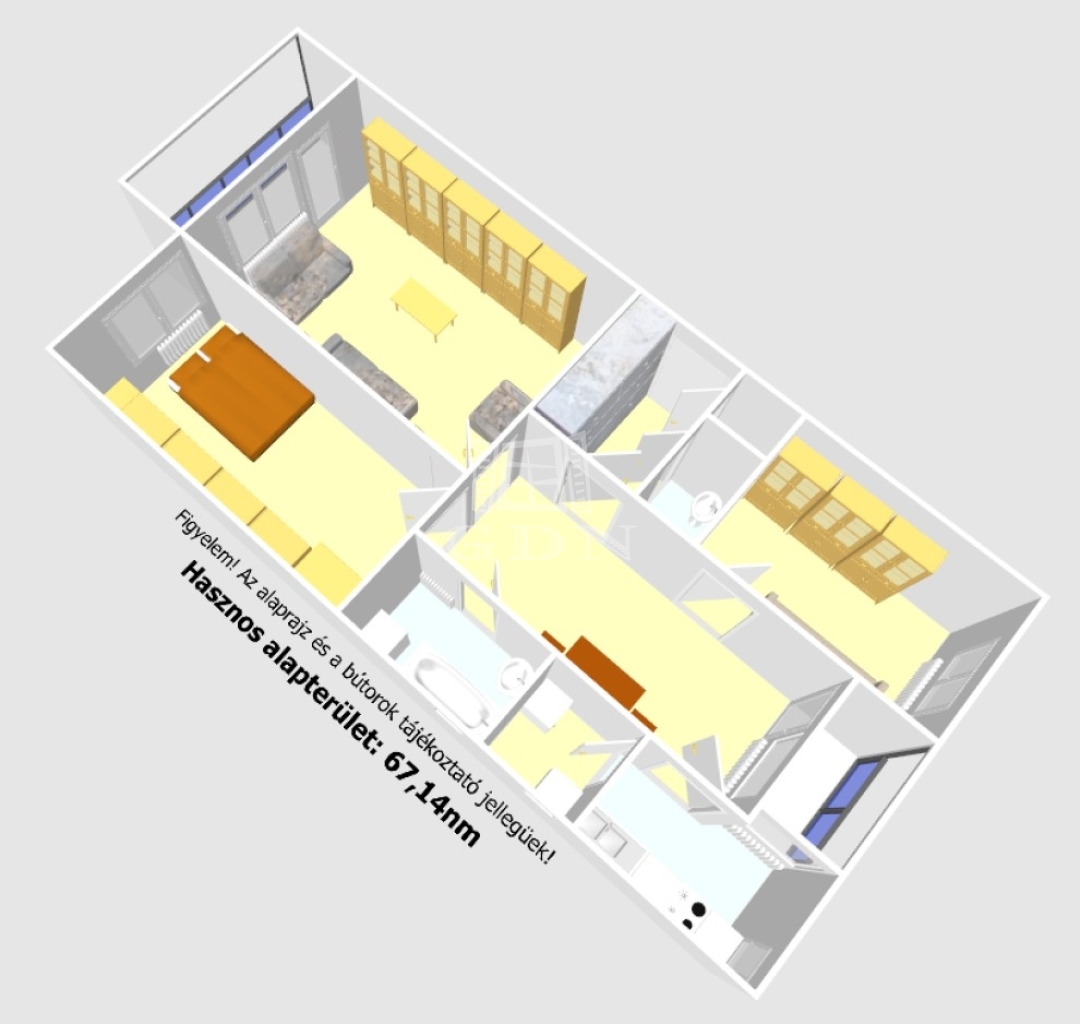 A lakás hasznos alapterülete 67nm, melyben található: