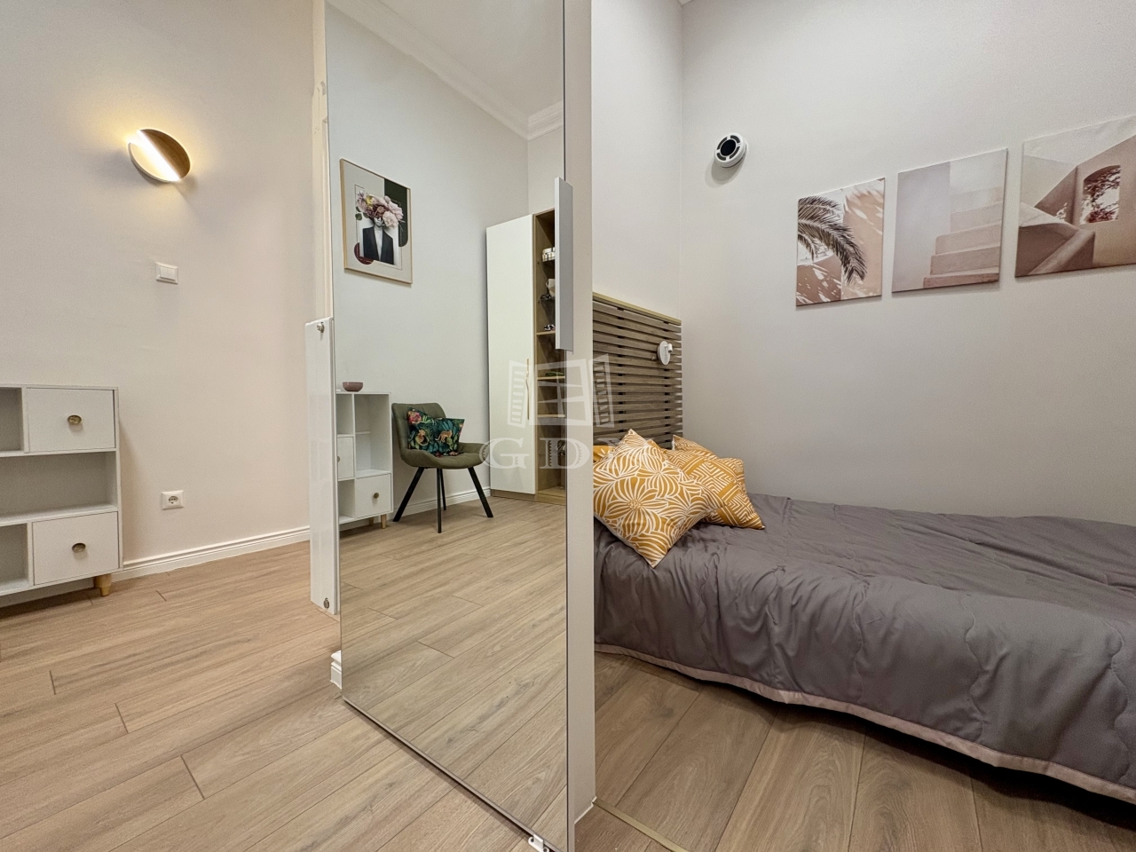 Az ingatlan praktikus kialakítású: tágas előtér, külön gardróbszoba, hálófülke, hatalmas zuhanyzós fürdőszoba, valamint külön helyiségben található bidés WC. Az ingatlan minden részlete átgondolt, kényelmes és modern életvitelt biztosít.