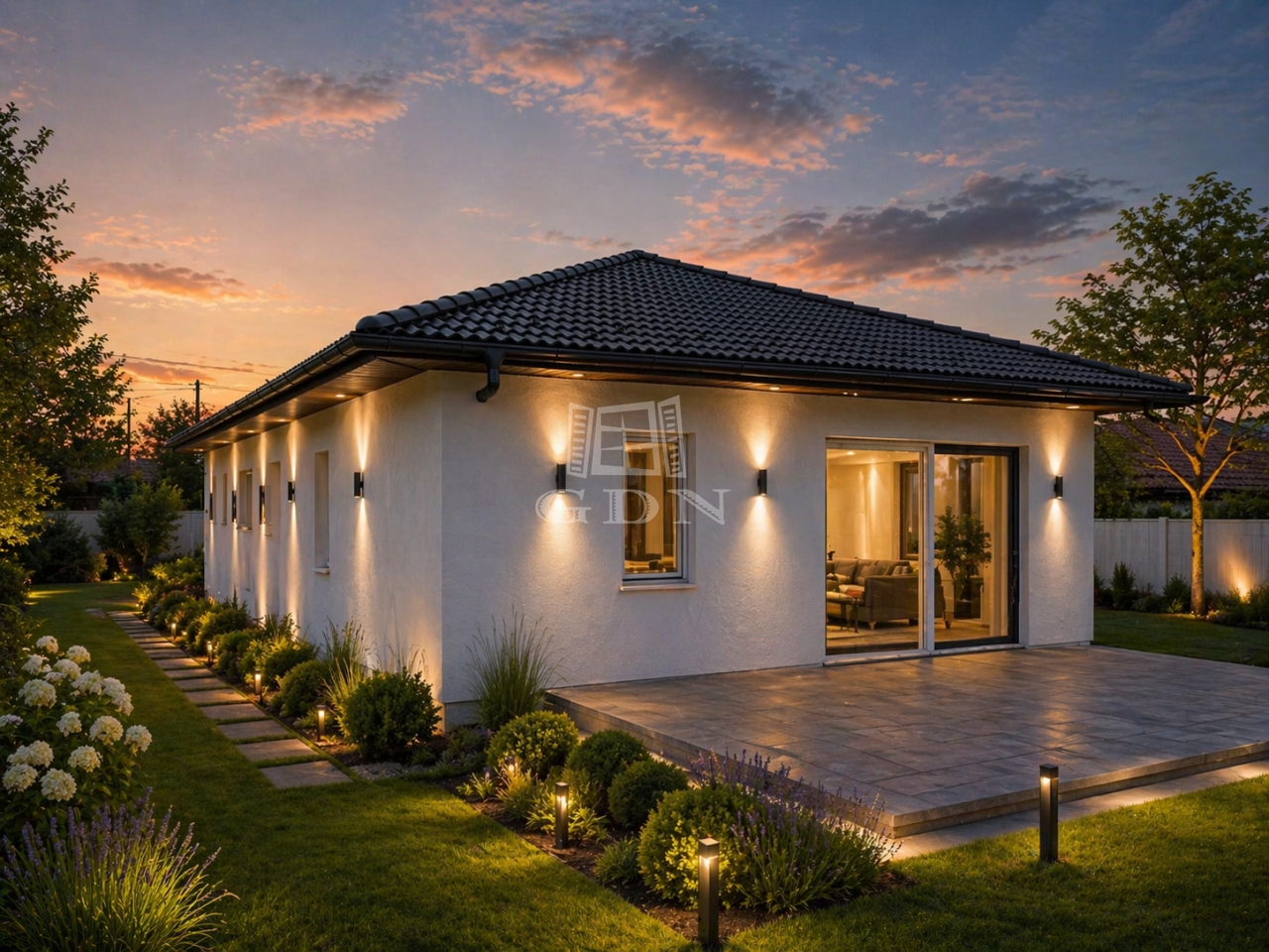 A ház praktikus elrendezésének köszönhetően négy külön nyíló szoba és egy tágas amerikai konyhás nappali biztosítja a kényelmes mindennapokat, miközben a korszerű műszaki tartalom alacsony fenntartási költségeket garantál.