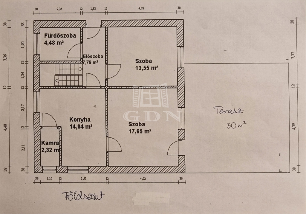 Erkély kb. 4 m² ; Terasz: 30 m².