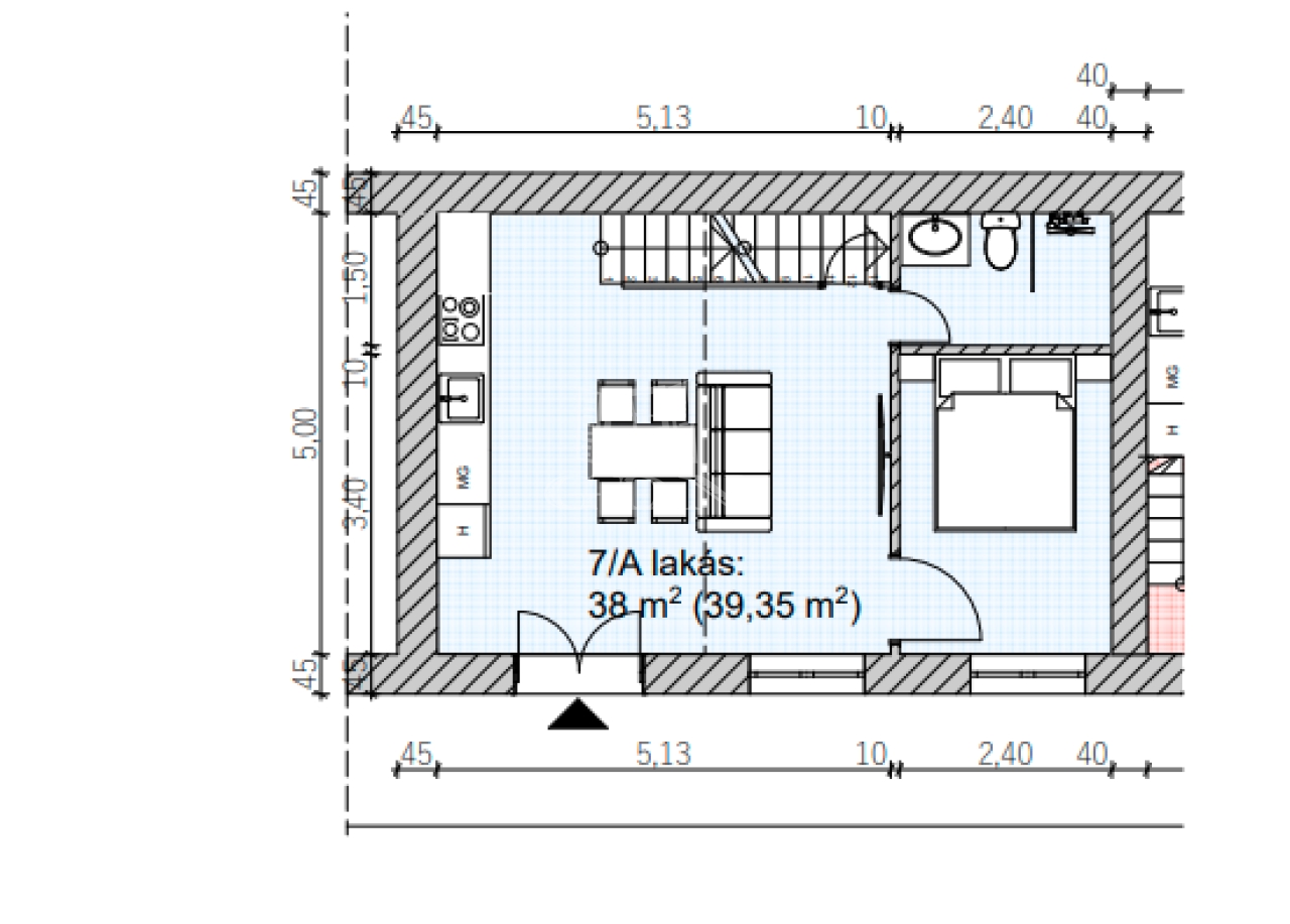 " A"- lakás rendkívül jó beosztású, hasznos alapterülete 61 nm.