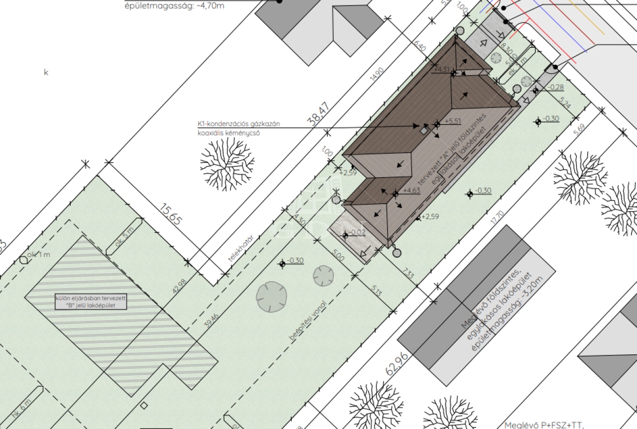"A" jelű utcafronti ingatlan 469 m2 telken nettó 106,77 m2 lakótérrel kulcsrakészen 130.000.000 ft