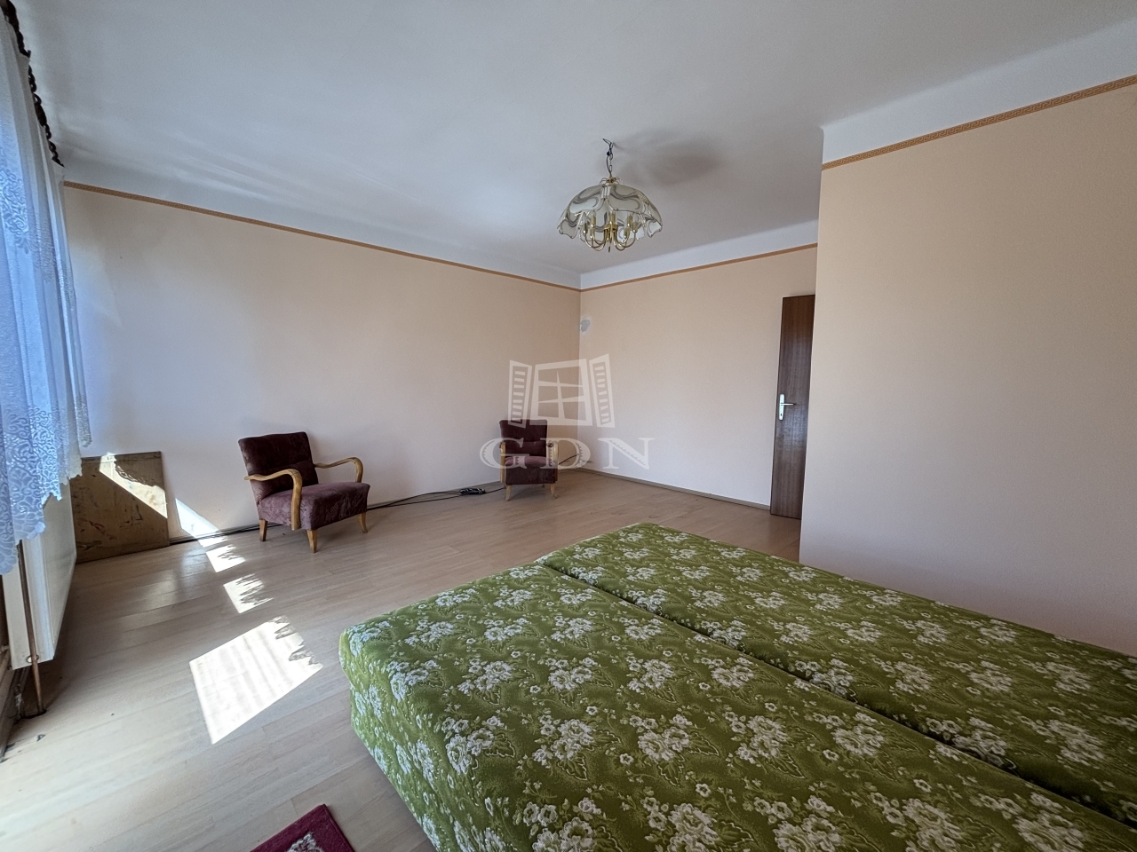 A földszinti ingatlan 97 négyzetméteres, három megfelelő méretű szobával rendelkezik.