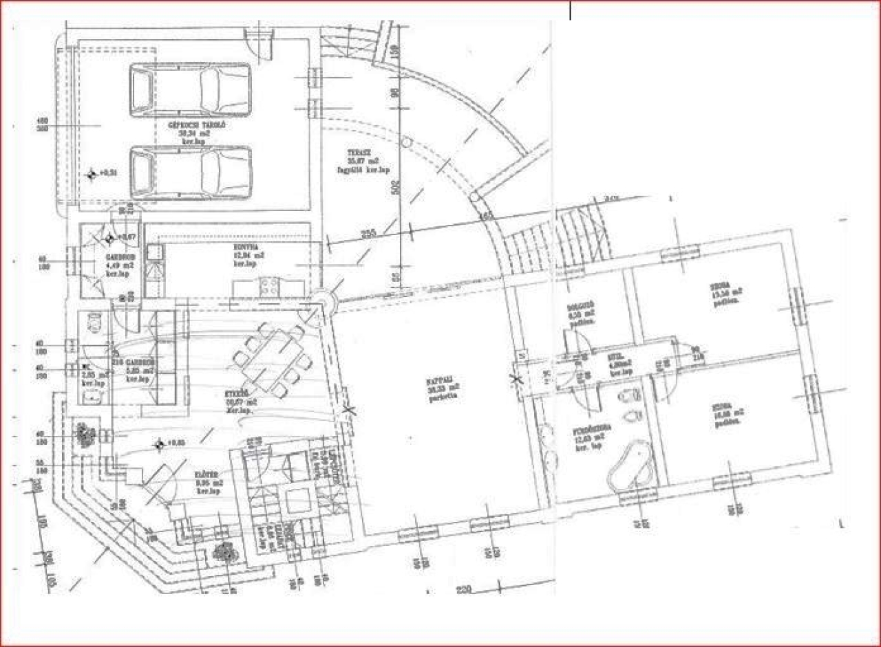 - Földszint 170 nm, étkező, konyha, fürdő, WC padlófűtésű, szobák