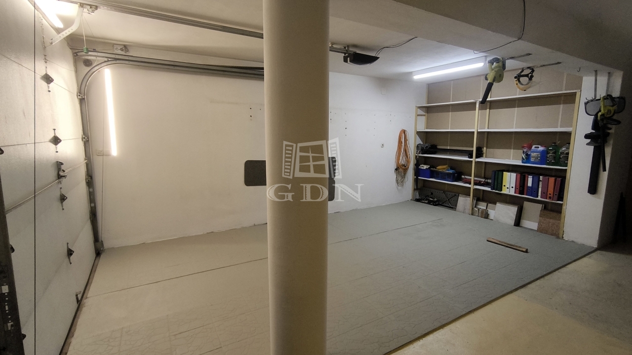 -a pinceszinten a garázs mögött található egy tároló, de a válaszfal kivétele révén a garázs alapterülete szintén nagyobbítható