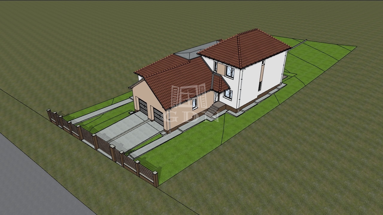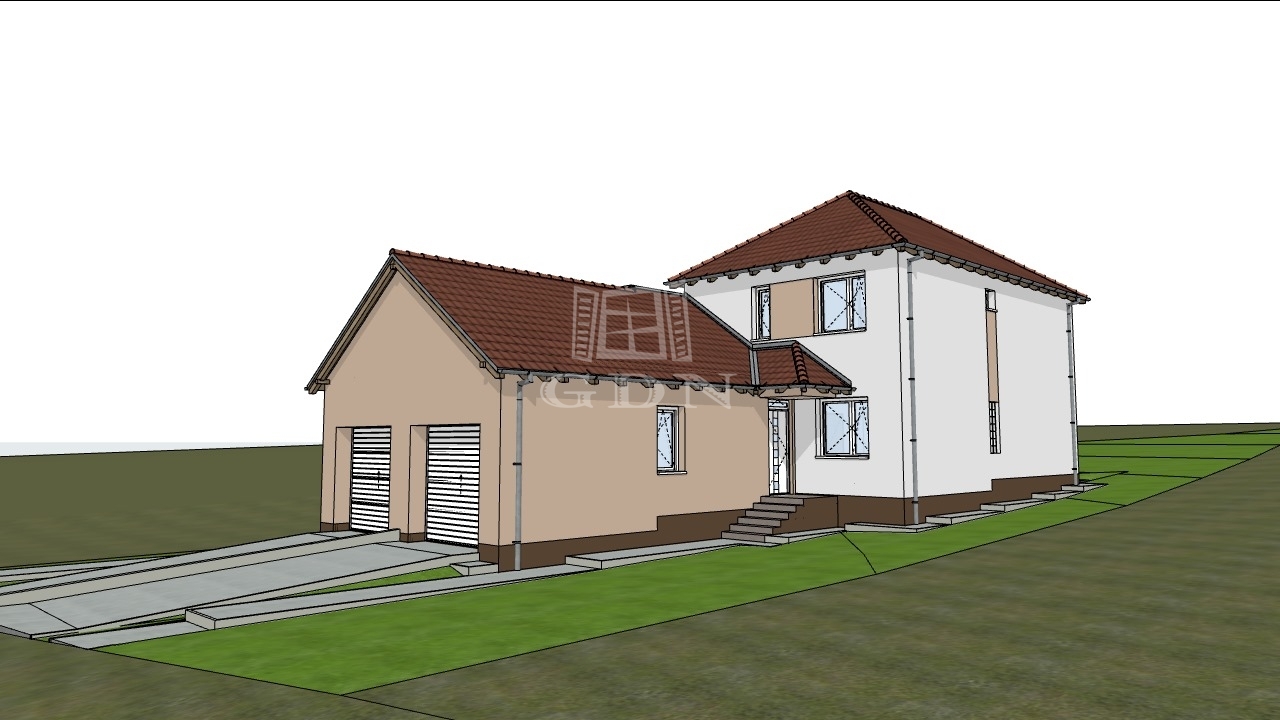 Jelen ikerház fél nettó 145 nm hasznos alapterületű két szintes épület + 20 nm-es fedett garázs, valamint 20 nm-es terasz és fedett belépő.