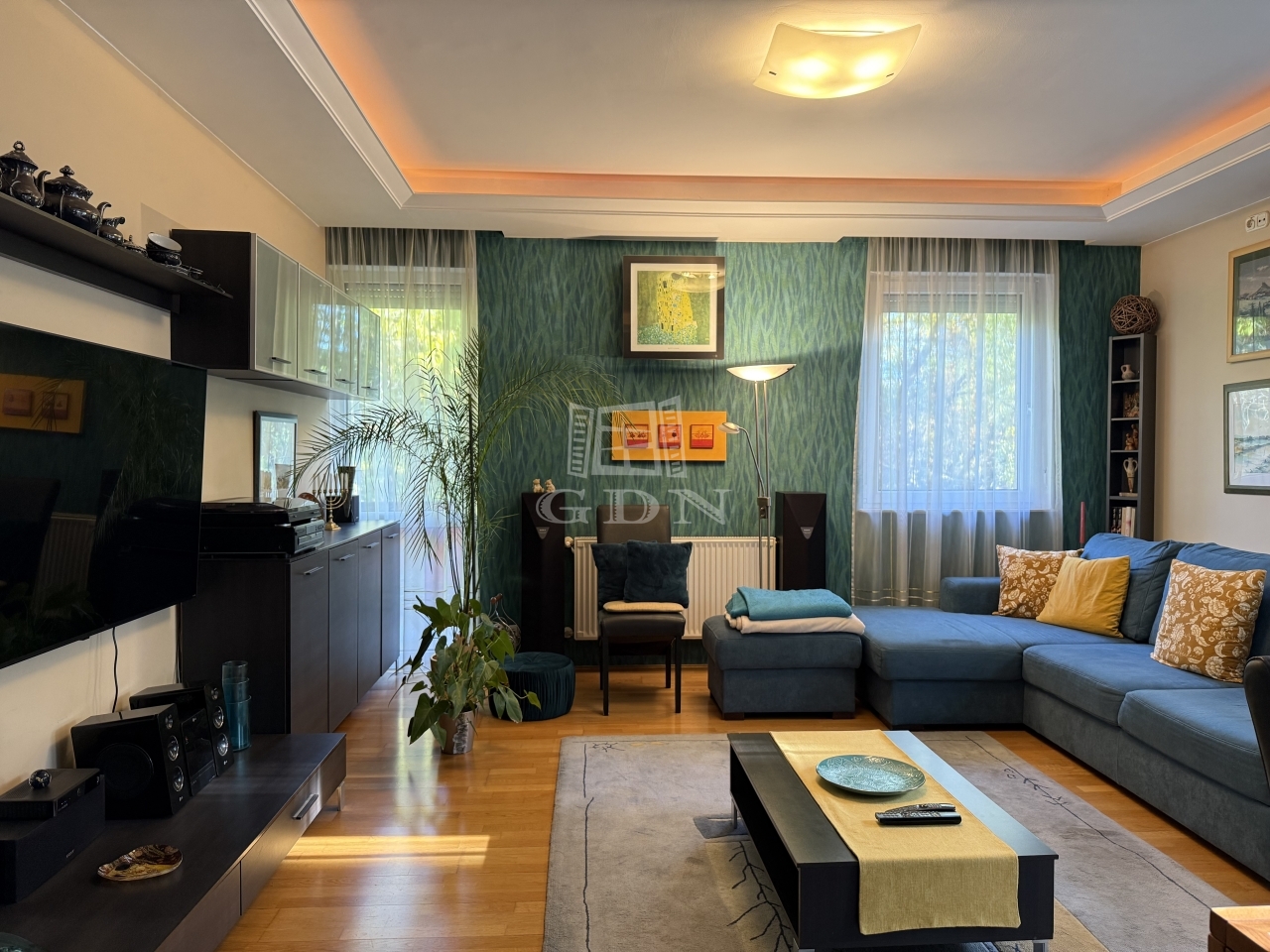 Az ingatlan 2004-ben épült, mindössze öt lakásos társasházban található, első emeleti, 81 m²-es, kifogástalan állapotú, amerikai konyhás nappalival és három hálószobával. A jól átgondolt elrendezés mellett két erkély (az egyik amerikai konyhás nappaliból nyílik, a másik pedig az egyik halószobából), ablakos fürdőszoba, külön vendég-WC, gardrób, két teremgarázs-hely és 7 m²-es tároló is tartozik hozzá.