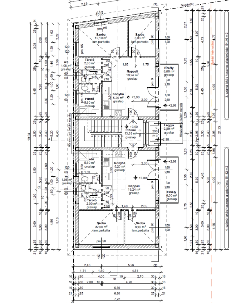 54 m2Alapterület 3 Szoba
