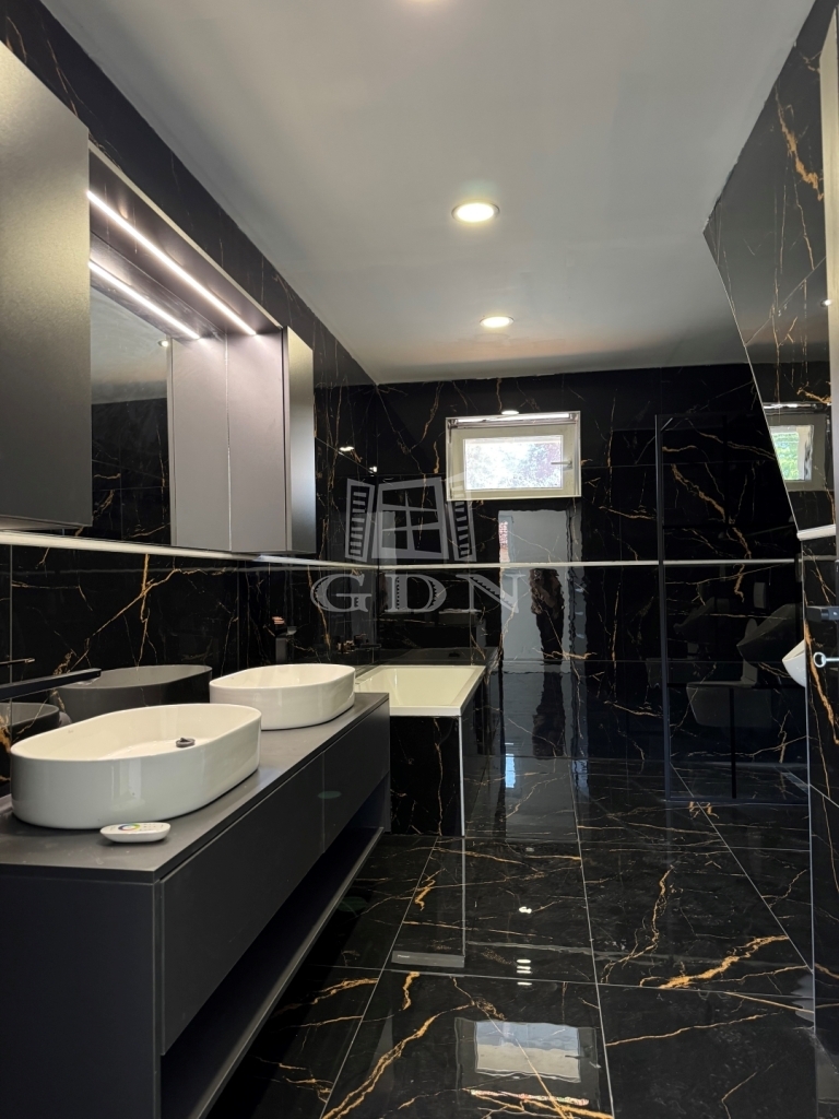 Egy gépesített, közel 50 m2-es amerikai konyhás nappali, egy szülői háló gardróbbal és fürdőszobával, kettő hálószoba, fürdőszoba, kazánház és egy nagyobb, mint kétállásos garázs lett kialakítva. A házhoz kapcsolódik egy 16m2-es fedett terasz is.