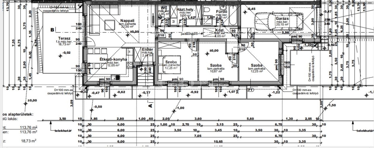 Jelen ikerház fél nettó 114 nm hasznos alapterületű egy szintes épület + 20 nm-es fedett garázs, valamint 19 nm-es terasz.