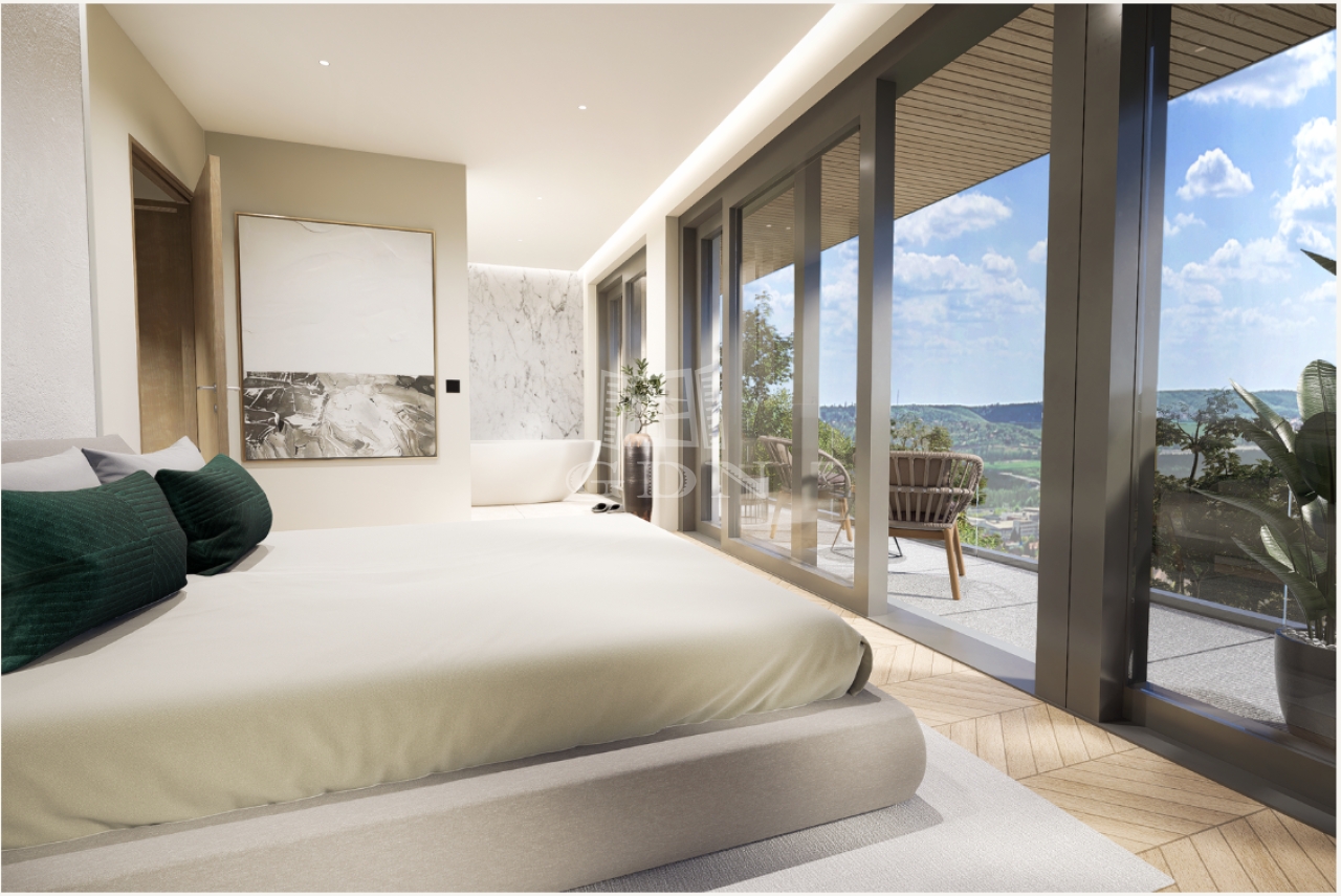Wellness & Relax: 46 m²-es panorámás terasz és egy egyedülálló, 21 m²-es belső japánkert, amely a ház szívét alkotja.