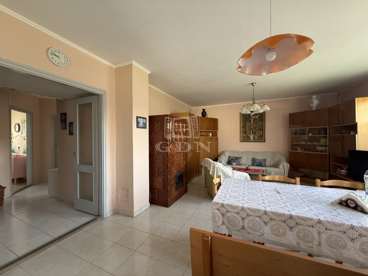 Elosztása: előszoba, konyha, nappali +1 hálószoba, wc mosdóval. Fűtése cserépkályha + elektromos fűtőpanel.
