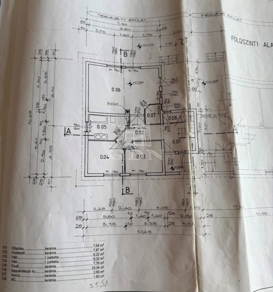 - a földszint 75,5m2: előszoba, nappali-konyha- étkező spájz, 2 hálószoba, fürdőszoba, wc , terasz (28m2)