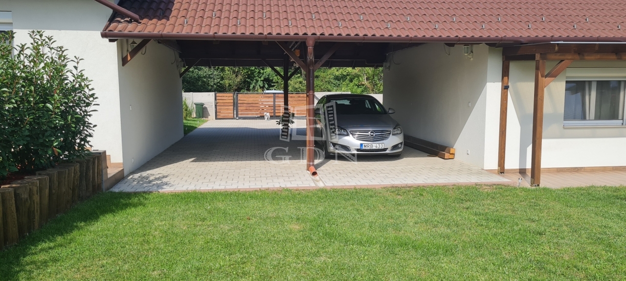 Tartozik hozzá 2 fedett autóbeálló és további 1 felszíni parkoló, kerti kisház, fedett grillterasz és gondosan parkosított kert.