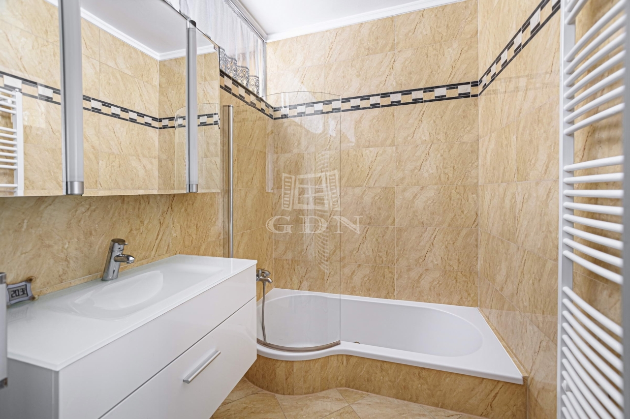 előszoba (4,2 m2), WC (1,1 m2), kamra (0,9 m2), nappali (34,5 m2), konyha (8,16 m2), gardrób (4,5 m2), fürdő (3,30 m2), kettő szoba (8,7 m2, 8,06 m2). Ezen a szinten gyönyörködhetünk, a 40 m2-es teraszon a város látképébe.