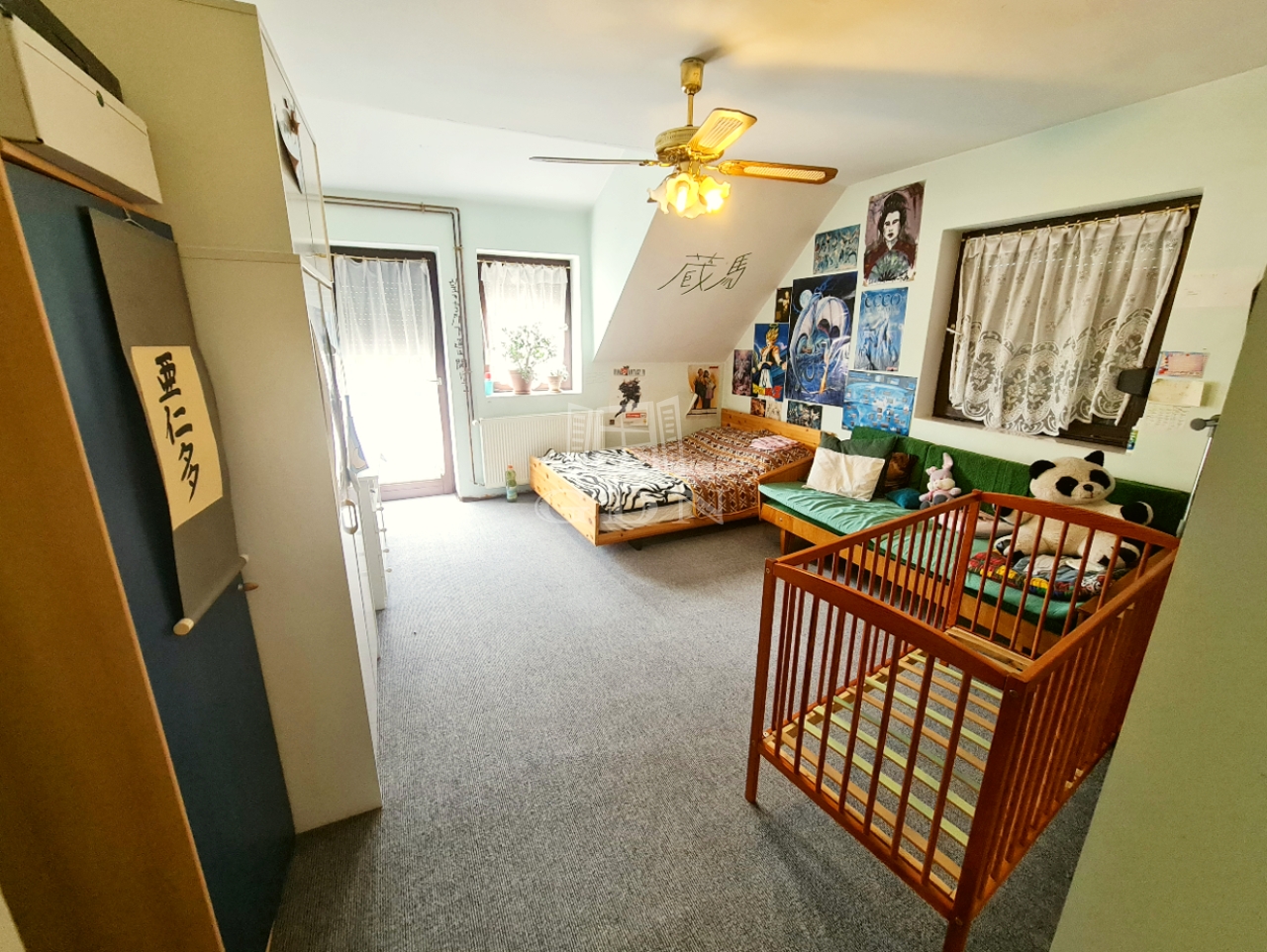 - Ezen a szinten található még egy tágas fürdőszoba, külön mosdó és közlekedő, ahonnan lépcső vezet a tetőtérbe.