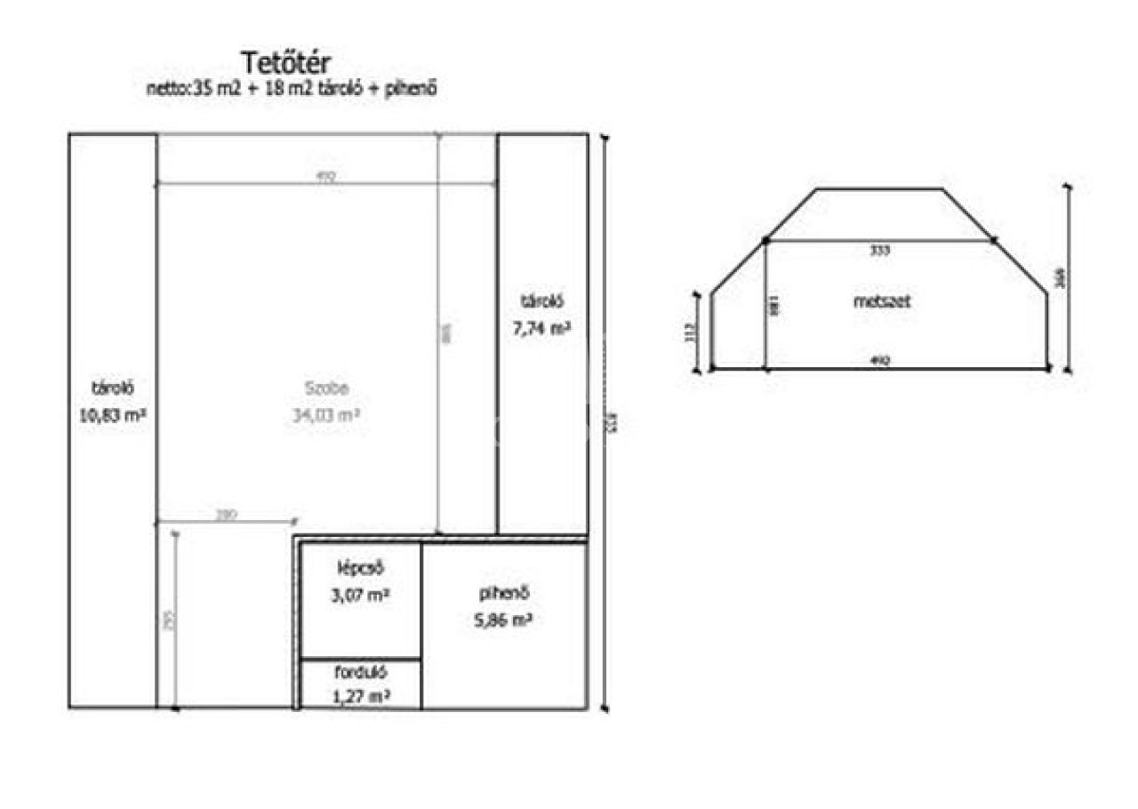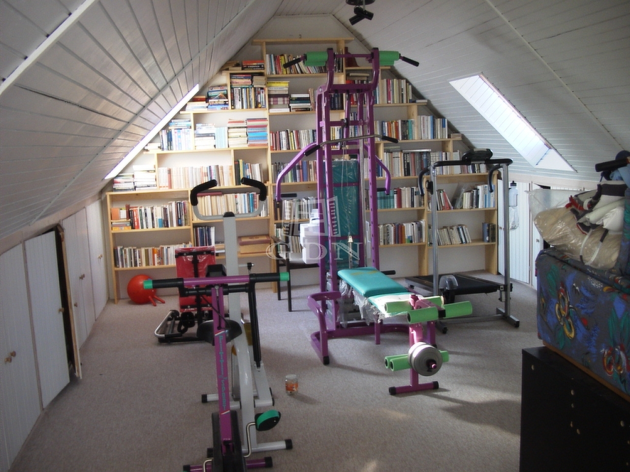 - A tetőtér jelenleg konditeremként funkcionál, kétoldalt további tárolóhelyiségekkel.