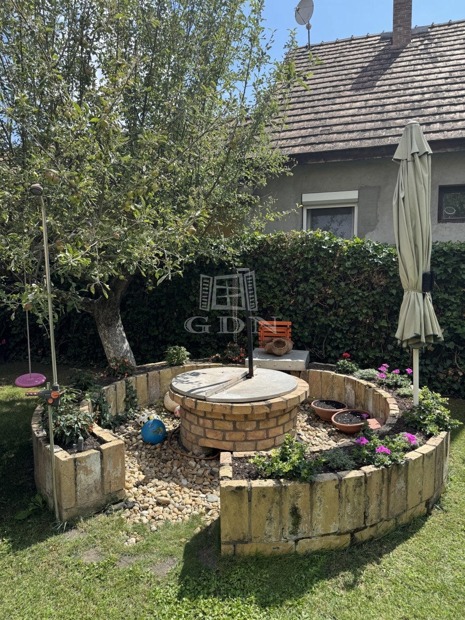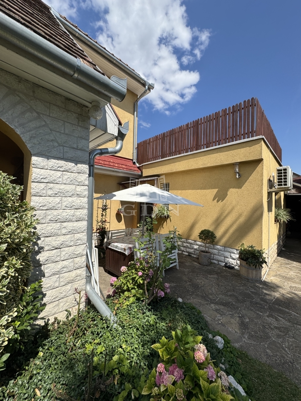 A gyönyörűen gondozott, parkosított 587 nm-es kertben, ami kiváló helyszín a kikapcsolódásra és családi összejövetelekre, 2 db teljesen külön bejáratú ház található.