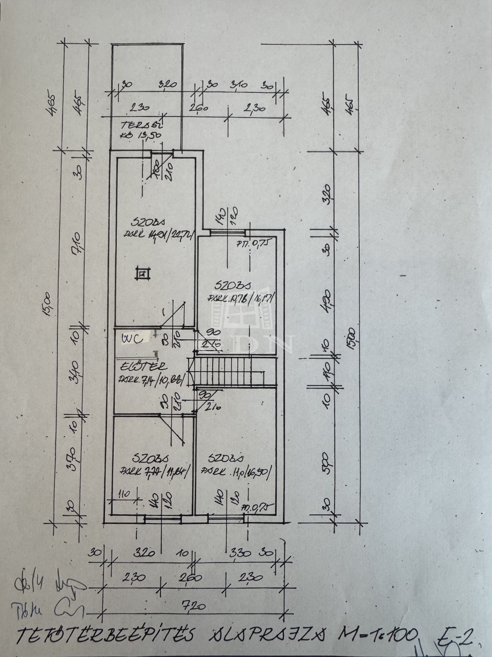 A nagyobb ház 120 nm- es, nappali + 4 szobás.