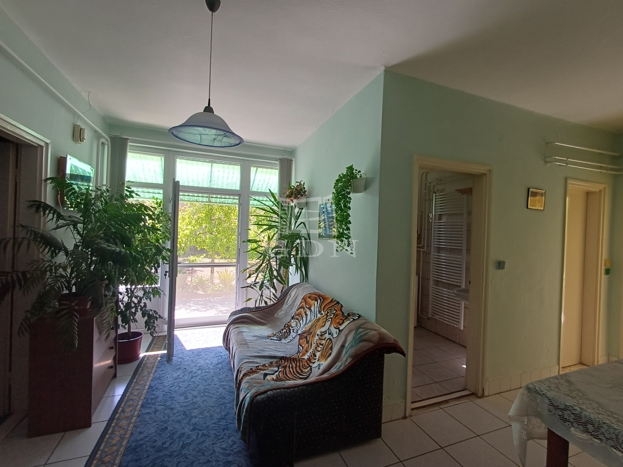A ház praktikus elrendezésű: hosszú, világos folyosó fogad bennünket, innen nyílik a konyha (amely akár szülői hálószobává is alakítható), valamint egy tárolóhelyiség, amely gardróbbá alakítható. Az otthon része egy tágas, szoba, egybenyitott konyha–étkező tér, külön mosdó, tusolós fürdőszoba, közlekedő, nappali, valamint két utcafronti szoba.