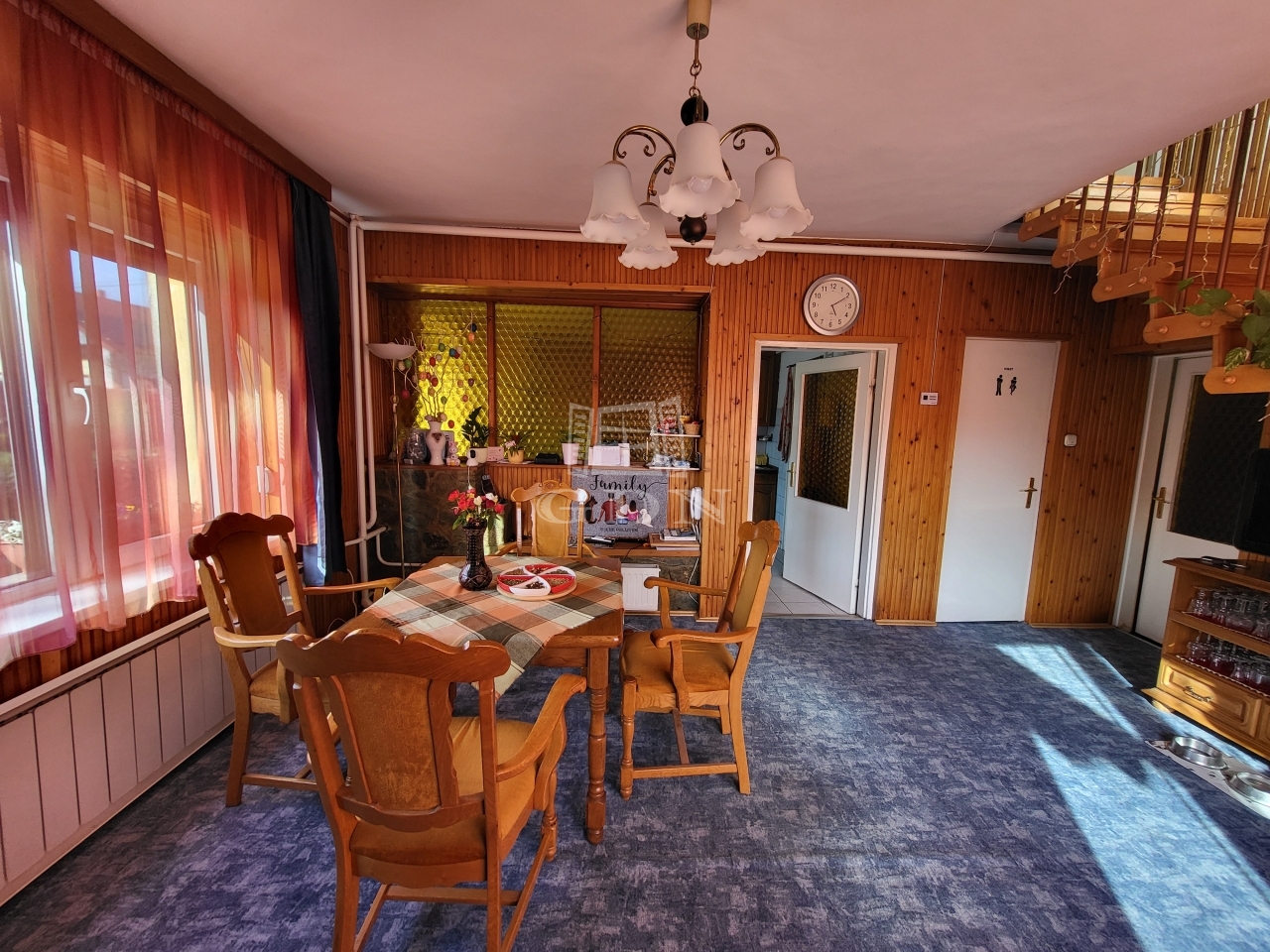 Földszint : szélfogó, közlekedő, nappali, konyha, kamra, szoba, fürdő, wc, kazánház