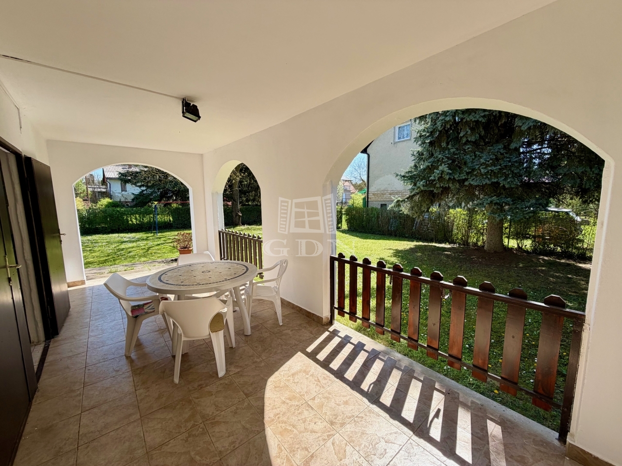 A kert rendezett parkosított, ahogy a képeken látszik.