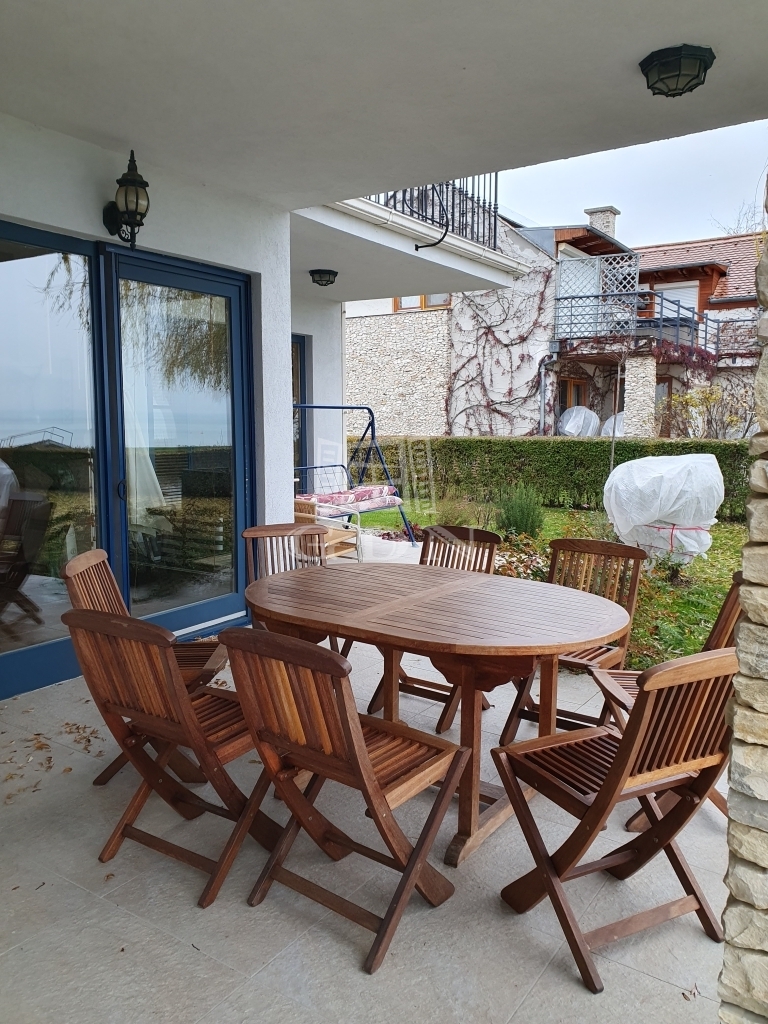 Wir bieten direkt am Plattensee in Balatonakali-Fövenyes, 12 km von die Kulturhauptstadt Balatonfüred entfernt in eine exklusive und abgeschlossenen Wohnpark ein außergewöhnliches, 2 stöckiges Villa mit eigenem Strand!