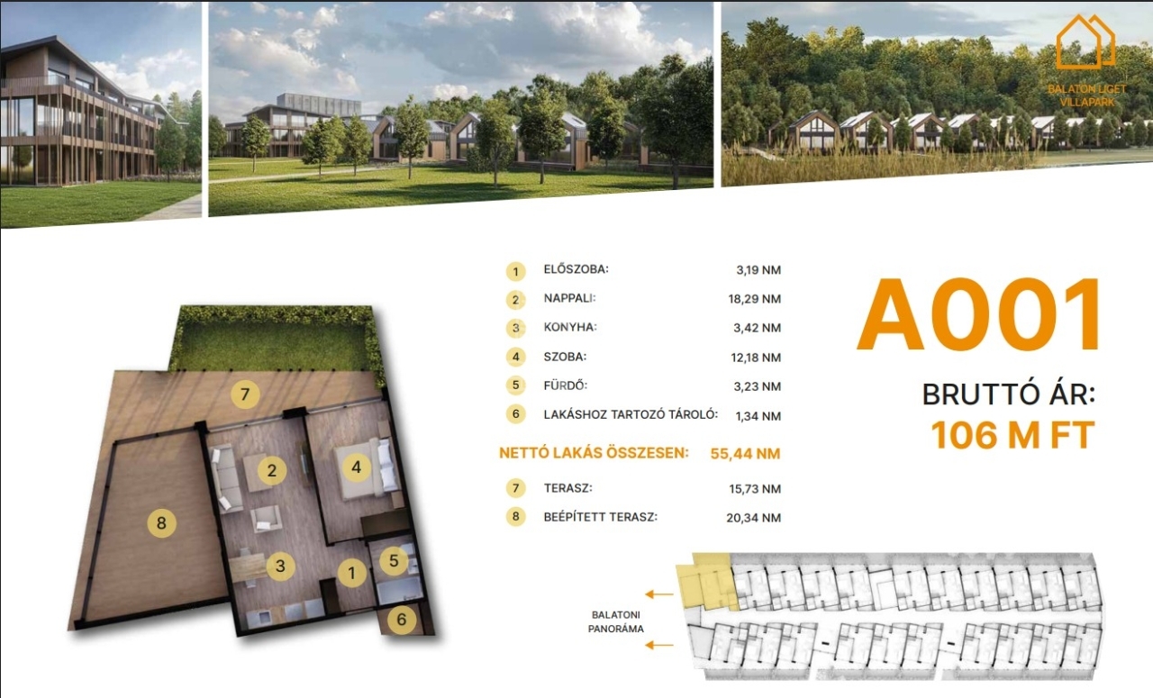Modern letisztult építészet, tömegformálás, Balatonra tájolt panorámás teraszok.