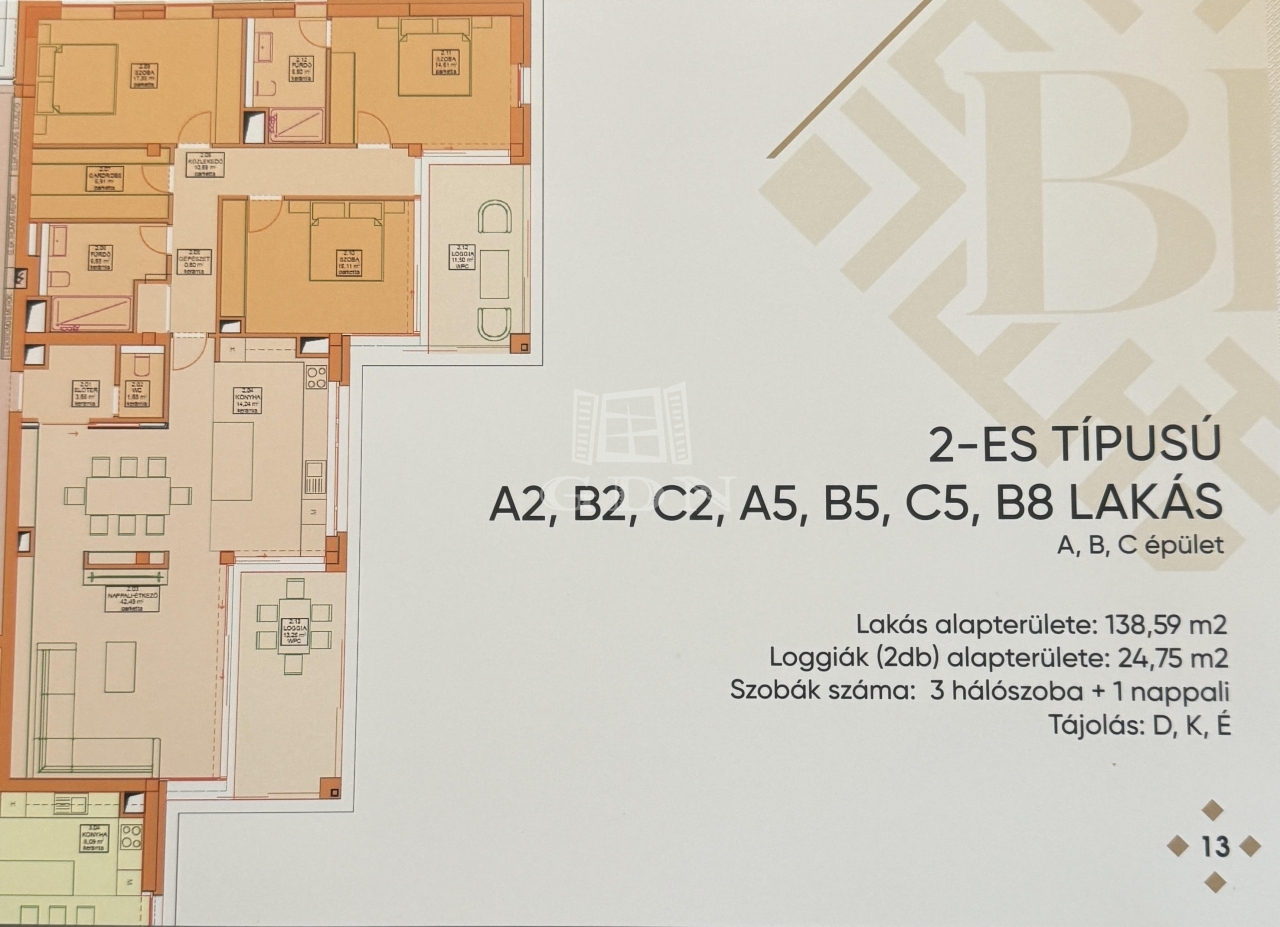 Az B/2-es típusú lakás 138,59 négyzetméteres, amelyhez 78,2 négyzetméteres saját kertkapcsolat