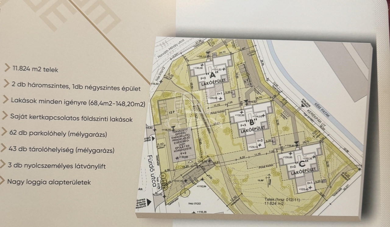 - 3 épületből és 27 darab lakásból álló luxus lakópark