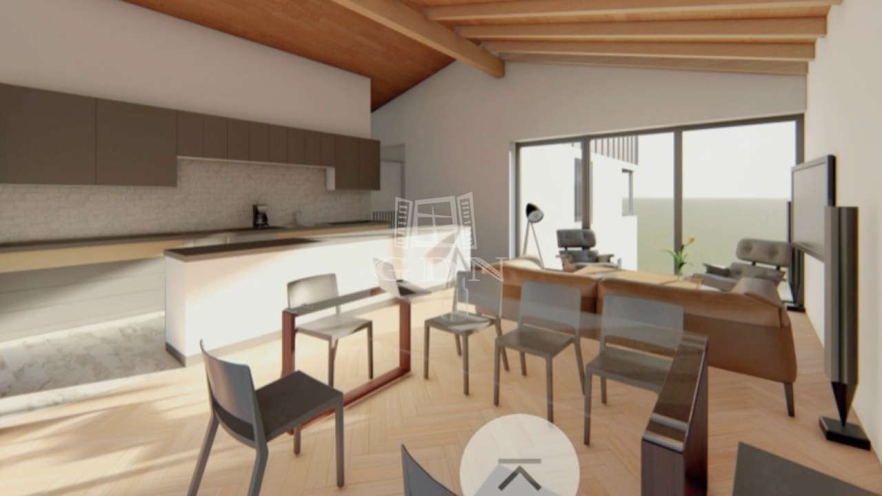 A felső lakószinten egy tágas, amerikai konyhás nappali–étkező fogad, amely a családi élet központja. Innen nyílik a 32 m²-es panorámás terasz, amely nem csupán egy kültéri tér, hanem az ingatlan egyik legnagyobb értéke – egy hely, ahol a reggelek nyugalomban indulnak, az esték pedig különleges hangulatban telnek.