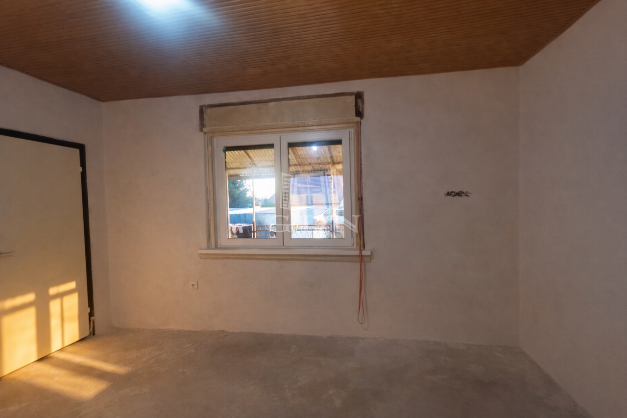 A ház praktikus elosztású, helyet kapott benne 3 szoba és egy nappali, amelyek kényelmes életteret biztosítanak egy család számára. A bejárat előtt egy nagy, fedett terasz található, amely tökéletes helyszíne lehet a pihenésnek, családi beszélgetéseknek vagy baráti összejöveteleknek.