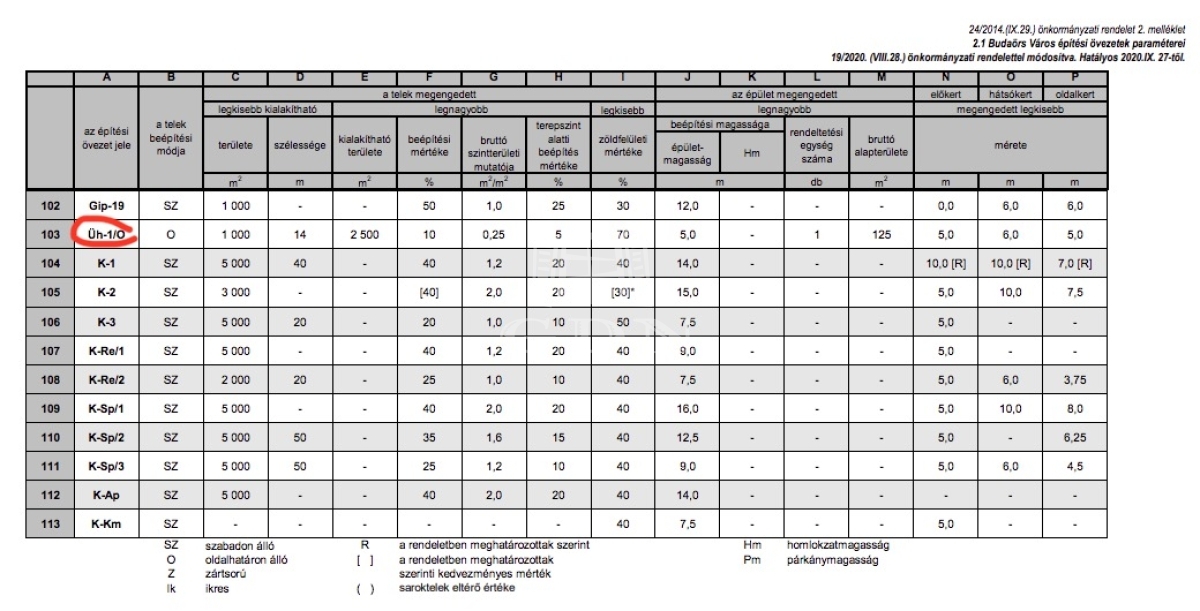 A telek besorolása: Üh