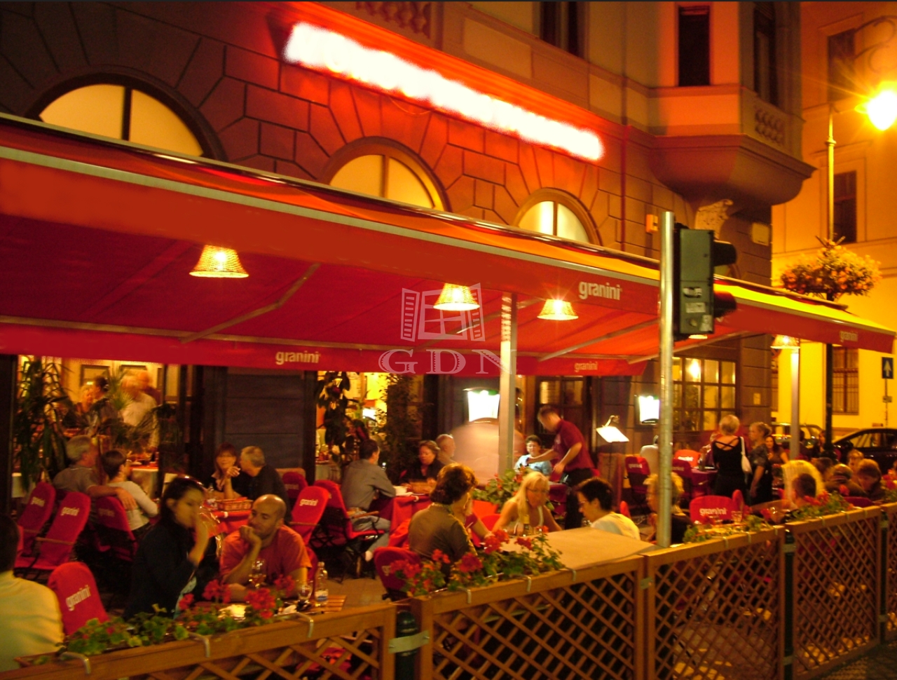 • Földszint: utcai frontos étterem 130 fő (3 helység) + 60 fő terasz (232 m2)