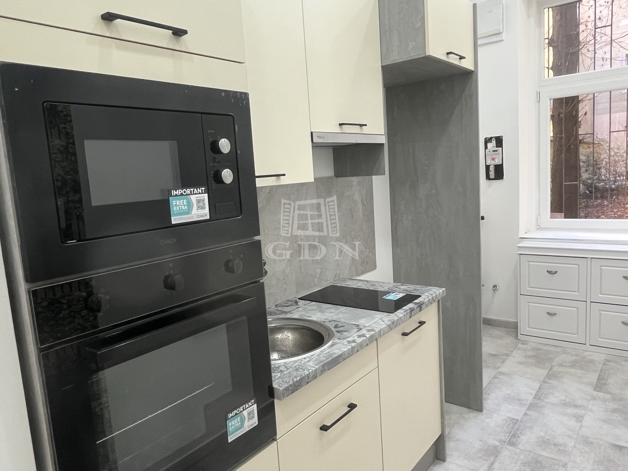 Gépesített konyha: mosogatógép, sütő, mikró, főzőlap, kivezetett elszívó, hűtő